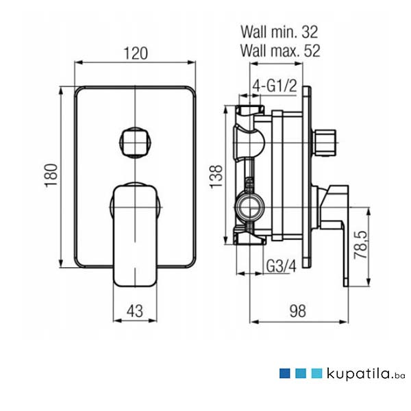 Baterija podžbukna sa 3 funkcije Carre Valvex