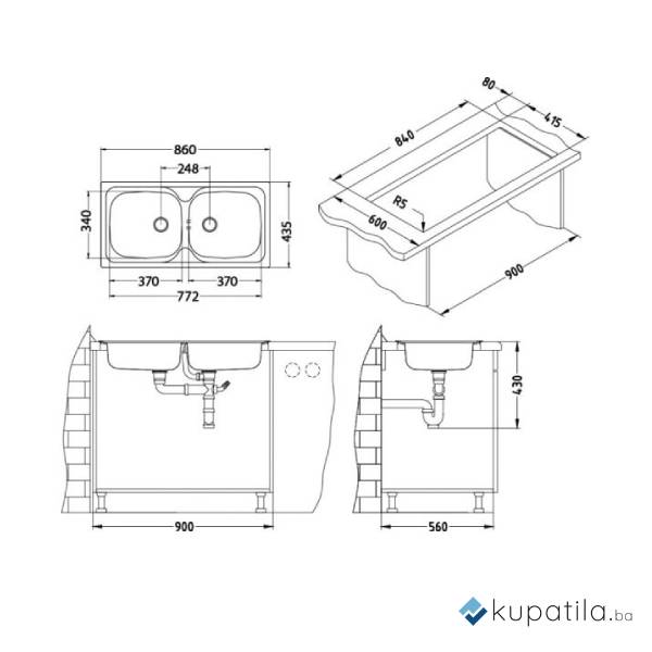 Minimalna širina ormarića (mm): 900