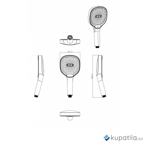 Tuš ručka 3 funkcije 12cm ABS Crna Inter Ceramic 7534